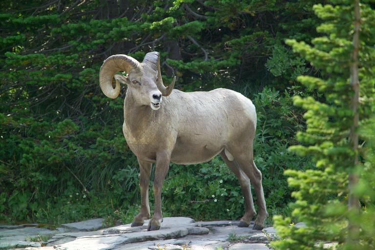 Keywords: big horn sheep ram wildlife male nature mammal portrait standing trees outdoors wild rocky trophy horns mountain bighorn