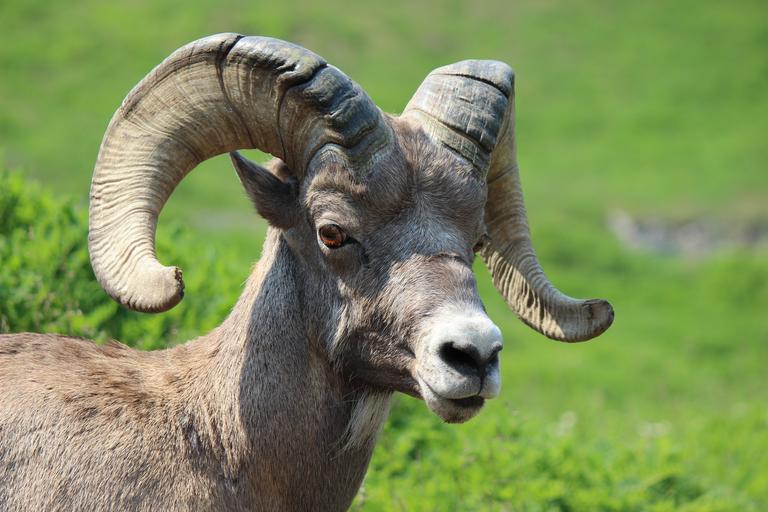Keywords: big horn sheep ram animal mammal male mountain rocky mountains jasper national park head wildlife bighorn horned brown tan curl