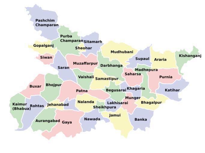 | Keywords: BiharDistricts.svg Bihar Districts Transferred from http //en wikipedia org en wikipedia; transferred to Commons by User Sreejithk2000 using http //tools wikimedia de/~magnus/commonshelper php CommonsHelper <br/> Original text Author 2008-10-20 User Manoj nav at http //en wikipedia org en wikipedia Released into the public domain by the author <br/> Original text Based on Image Bihar_locator_map svg en wikipedia Manoj nav original upload log page en wikipedia BiharDistricts svg 2008-10-20 09 53 Manoj nav 1600×1200× 150678 bytes <nowiki>Based on Image Bihar_locator_map svg </nowiki> 2008-10-20 09 50 Manoj nav 1600×1200× 147171 bytes <nowiki></nowiki> 2008-10-20 09 47 Manoj nav 1600×1200× 142702 bytes <nowiki></nowiki> 2008-10-20 09 44 Manoj nav 1600×1200× 142816 bytes <nowiki></nowiki> 2008-10-20 09 39 Manoj nav 1600×1200× 140642 bytes <nowiki></nowiki> Districts of Bihar |