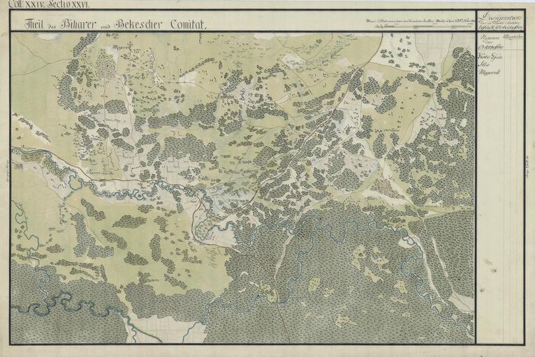 | Keywords: BihorSolnocCrasna Josephinische Landesaufnahme pg24-26.jpg wikitable style margin 1em auto 1em auto width 80 Name shown on the map<br>Nume din hartă Administrative unit<br>Unitate administrativă Romanian name<br>Numele românesc Hungarian name<br>Numele unguresc German name<br>Numele german Country today<br>Ţara de astăzi - Kote-Gjan Bihar Kötegyán Magyarország - Illie Bihar Ciumeghiu Illye Csömög Csümeg Illye Csömög Csümeg România - Megerek Bihar Micherechi Méhkerék Magyarország - Kingdom of Hungary 1782-85 Josephinische Landesaufnahme pg 24-26 <br>Counties shown on the map <br>1 Bihar County<br>2 Bekeser County Harta Iosefină a Regatului Ungariei 1782-85 Josephinische Landesaufnahme pg 24-26 <br>Comitate prezentate pe hartă <br>1 Comitatul Bihor<br>2 Comitatul Bichiş Österreichisches Staatsarchiv Kriegsarchiv Historische Militärkarte der österreichisch-ungarischen Monarchie 1782-1785 PD-old-100 Clickable Map of the Bihor Solnoc Crasna County BihorSolnocCrasnaCountyJosephinischeLandesaufnahme1782-85 Josephinische Landaufnahme Old maps of Békés County |