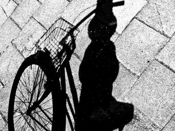 Keywords: bike bicycle shadow street cycle sport activity fun outdoor ride active biking cyclist cycling biker transportation transport summer road parked stationary vehicle parking urban