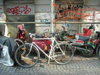 Keywords: bike colorful roller old lumber scrap big city hamburg