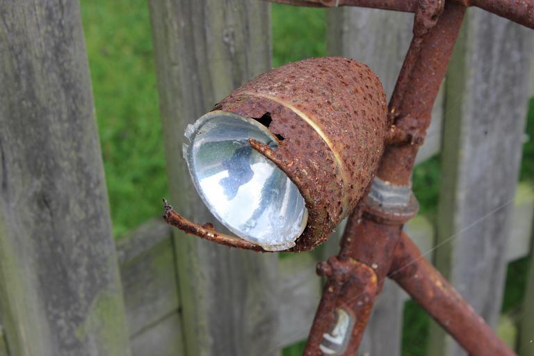 Keywords: bike lamp stainless wheel cycling bicycle lamp bicycle accessories metal broken handle old lighting handlebars past paling wood iron scrap iron scrap metal light bulb brake rusty rust red brown scrap
