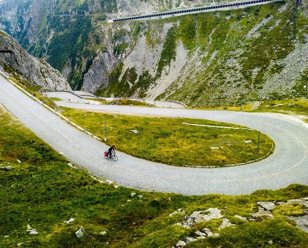 Keywords: biker ride hill mountain alps old pass italy switzerland lone freedom active bike riding adventure speed transportation