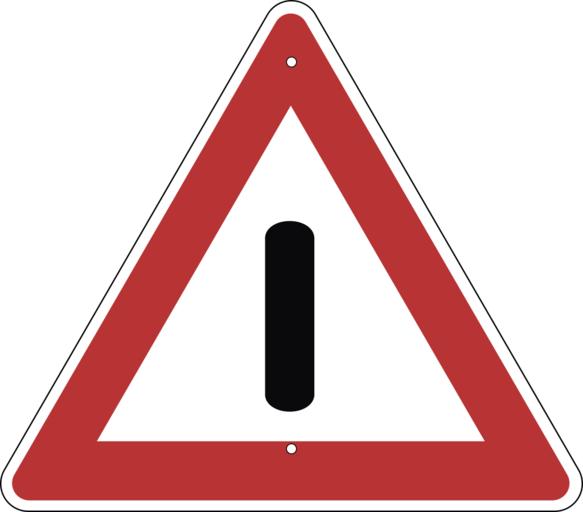 | Keywords: Bild 1 - Allgemeine Gefahrstelle, StVO DDR 1964.svg de Bild 1 Allgemeine Gefahrstelle StVO DDR 1964 Verkehrszeichen der Deutschen Demokratischen Republik nach der Straßenverkehrsordnung StVO von 1964 Größe nach TGL 10629 Tabelle 2 700 bzw 1100 mm Kantenlänge <br /> Die Ausführung dieses Schildes richtet sich nach den im April 1967 bekanntgegebenen Normen TGL 10629 Blatt 2 Leiteinrichtungen für den Straßenverkehr “ Verkehrszeichen “ Schilder und TGL 10629 Blatt 3 Leiteinrichtungen für den Straßenverkehr “ Verkehrszeichen “ Symbole Farbe Schrift Die Farbgrenzen werden deffiniert nach der im Februar 1967 bekanntgegebenen Norm TGL 20684 Blatt 6 Signallichter “ Farben und Farbgrenzen im Verkehrs “ Ortsfeste Signallichter im Straßenverkehr Alle zwei genannten Normen wurden am 01 01 1968 verbindlich TGL 20684 Blatt 6 war ein Ersatz für die ältere Norm TGL 06163 vom November 1962 die bei Einführung der StVO von 1964 galt Damals hatte es noch keine durch die CIE-Normfarbtafel festgelegten Farbgrenzen gegeben Die normierten Bohrlöcher im Schild nach TGL 10629 Tabelle 2 sind behördlich vorgeschrieben und daher unverzichtbarer Bestandteil bei diesen Verkehrszeichen und werden somit in der Abbildung wiedergegeben Anwendung fand bei der Einführung dieser StVO noch die Typfarbkarte 5/62 und ab dem 01 10 1969 die verbindlich eingeführte Farbkarte nach TGL 21196 TGL 21196 vom Januar 1969 Anstrichstoffe “ Farbregister Typfarbkarte 5/62 Rot 3000 RAL-Farbtonregister 840 R 3000 TGL 21196 1969 0605 žSignalrot Lab L 44 78 a 50 80 b 26 62 Zur CIELab-Umwandlung siehe TGL 21196 Juni 1987 Anstrichstoffe “ Farbregister “ Vorzugsfarben own Mediatus 25 Februar 2016 Herstellungsdatum + Signs User Mediatus/no-new-version Cc-zero SVG road signs in East Germany 01 svg Diagrams of danger warning road signs of East Germany 1964 set 01 svg Diagrams of danger warning road signs of East Germany 1971 set 01 svg Diagrams of triangular warning road signs with Germany Triangular warning road signs of East Germany 01 svg |