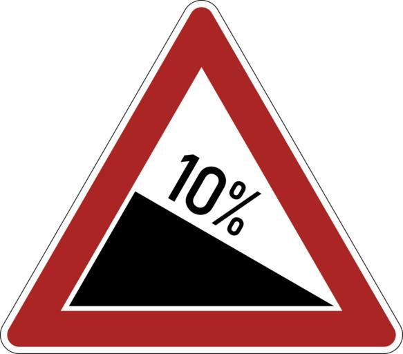 | Keywords: Bild 2b - Gefährliches Gefälle, StVO 1956.svg Slope signs de Bild 2b Gefährliches Gefälle Für den Rotton wurde das RAL-Farbtonregister 840 R gewählt Der dort verzeichnete Rotton RAL 3000 ist in der Abbildung wiedergegeben Zeichen dieser Art wurden bis zur StVO 1970 hergestellt Dann änderte sich der Rotton der Umrandung Verkehrszeichen nach den Vorgaben der StVO in der Fassung vom 29 März 1956 Quelle Bundesgesetzblatt Jahrgang 1956 Nr 19 S 351 Tag der Ausgabe Bonn 29 Mai 1956 own Mediatus 2013-09-02 v Cc-zero PD-VzKat Diagrams of danger warning road signs of Germany 1956 set 02b |