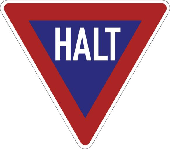 Keywords: Bild 30a - Halt! Vorfahrt achten! StVO 1956.svg de Bild 30a - Halt Vorfahrt achten Das bis 1971 produzierte westdeutsche Verkehrszeichen žHALT in der Fassung der StVO vom 29 März 1956 mit drei abgerundeten Ecken; hergestellt bis 1971 fr L'ancien panneau stop 1956 “1971 own Mediatus 23 Juli 2012 Herstellungsdatum + Signs User Mediatus/no-new-version Cc-zero PD-VzKat German language signs 30a svg Location not applicable Diagrams of regulatory road signs of Germany 1956 set 30a svg SVG road signs in Germany 30a svg Diagrams of stop signs Germany Stop signs with HALT Triangular stop signs Bild 30a Navy red white road signs