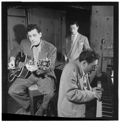 | Keywords: Bill De Arango, Terry Gibbs, and Harry Biss, Three Deuces, New York, N.Y., ca. June 1947 (William P. Gottlieb 01901).jpg en Bill De Arango Terry Gibbs and Harry Biss THree Deuces NYC ca June 1947 Photography by William P Gottlieb http //lcweb2 loc gov/diglib/ihas/loc natlib gottlieb 01901/enlarge html page 1 section ver01 size 1024 from Creator William P Gottlieb PD-Gottlieb Photographs by William P Gottlieb Black and white photographs of the United States in the 1940s Jazz guitarists Terry Gibbs |