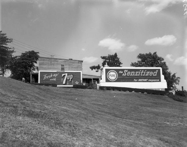 | Keywords: library of virginia libraryofvirginia richmond va richmondva advertising billboard signs belvidere st belviderest adolph b. rice studio adolphbricestudio 1954 billboards outdoor advertising outdooradvertising 7 up 7up beverages uncola pure gasoline puregasoline gasolines oregon hill oregonhill blackandwhite monochrome outdoor black and white Title: Billboard advertisements for 7Up and Pure gasoline Creator: Adolph B. Rice Studio Date: August 13, 1954 Identifier: Rice Collection 405G Format: 1 negative, safety film, 4 x 5 in. Rights Info: No known restrictions on publication. Repository: Library of Virginia, Prints and Photographs, 800 E. Broad St., Richmond, VA, 23219, USA, digitool1.lva.lib.va.us:8881/R Title: Billboard advertisements for 7Up and Pure gasoline Creator: Adolph B. Rice Studio Date: August 13, 1954 Identifier: Rice Collection 405G Format: 1 negative, safety film, 4 x 5 in. Rights Info: No known restrictions on publication. Repository: Library of Virginia, Prints and Photographs, 800 E. Broad St., Richmond, VA, 23219, USA, digitool1.lva.lib.va.us:8881/R |