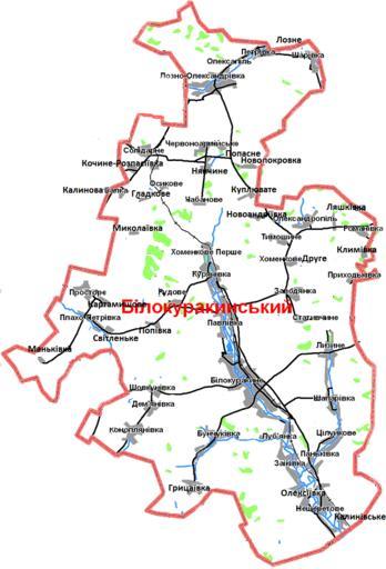 Keywords: Bilokurakinskyi.png Білоку акинського айону Луганської області Ук аїни азом із автошляхами з тве дим пок иттям залізницею ічками та лісами Ство ено власно уч на основі топог афічної ка ти Генштабу СРСР Dim Grits ; Олег 2013-10-31 Maps of Belokurakinskii rajon |