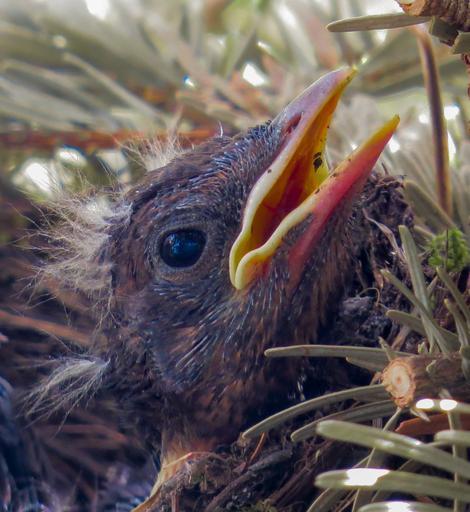 Keywords: bird blackbird young nest bird's nest blackbird nest close