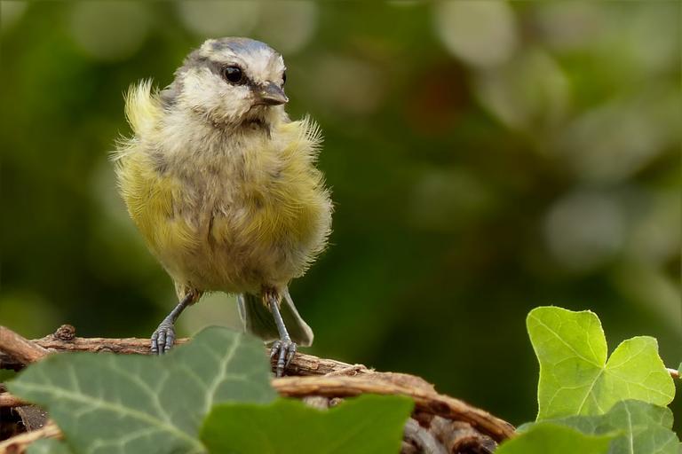 Keywords: bird blue tit cyanistes caeruleus young foraging garden