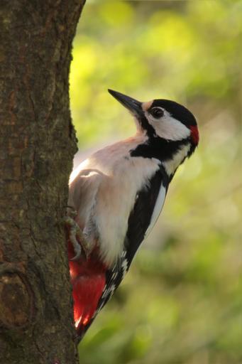 Keywords: bird great spotted woodpecker log garden foraging