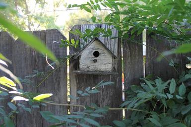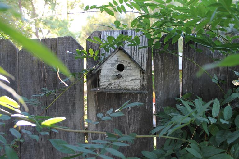 Keywords: bird house fence garden wood rustic animal home wooden birdhouse outdoor rural