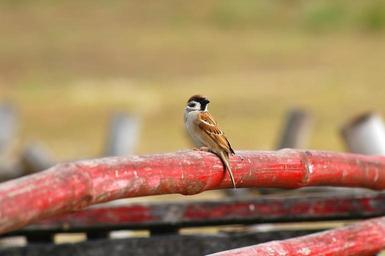 Keywords: bird red bamboo pole countryside maya