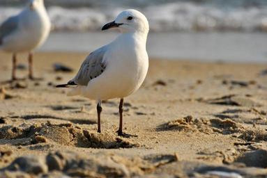 Keywords: bird sea-goes creature grazing birds white brown seagulls gulls sea beach