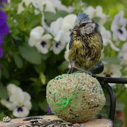 Keywords: bird tit blue tit cyanistes caeruleus young garden foraging