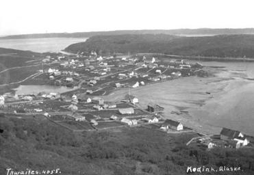 | Keywords: Bird's-eye view of Kodiak, ca 1912 (THWAITES 191).jpeg check categories 27 October 2016 1 Photograph Creator John E Thwaites Caption on image Kodiak Alaska PH Coll 247 514<br/>Kodiak is located near the eastern tip of Kodiak Island in the Gulf of Alaska Kodiak Island the emerald isle is the largest island in Alaska and is second only to Hawaii in the U S Kodiak National Wildlife Refuge encompasses nearly 1 9 million acres on Kodiak and Afognak Islands The Island has been inhabited by Sugpiaq Eskimos Alutiiq for the past 8 000 years The first non-Native contacts were in 1763 by the Russian Stephen Glotov and in 1792 by Alexander Baranov a Russian fur trapper Sea otter pelts were the primary incentive for Russian exploration and a settlement was established at Chiniak Bay the site of present-day Kodiak At that time there were over 6 500 Sugpiaq Eskimos in the area and the Island was called Kikhtak It later was known as Kadiak the Inuit word for island Kodiak became the first capital of Russian Alaska and Russian colonization had a devastating effect on the local Native population By the time Alaska became a U S Territory in 1867 the Koniag region Eskimos had almost disappeared as a viable culture Sea otter fur harvesting was the major commercial enterprise and eventually led to the near extinction of the species However in 1882 a fish cannery opened at the Karluk spit This sparked the development of commercial fishing in the area The City of Kodiak was incorporated in 1940 During the Aleutian Campaign of World War II the Navy and the Army built bases on the Island Fort Abercrombie was constructed in 1939 and later became the first secret radar installation in Alaska Development continued and the 1960s brought growth in commercial fisheries and fish processing The 1964 earthquake and subsequent tidal wave virtually leveled downtown Kodiak The fishing fleet processing plant canneries and 158 homes were destroyed - 30 million in damage The infrastructure was rebuilt and by 1968 Kodiak had become the largest fishing port in the U S in terms of dollar value The Magnusson Act in 1976 extended the U S jurisdiction of marine resources to 200 miles offshore which reduced competition from the foreign fleet and over time allowed Kodiak to develop a groundfish processing industry Subjects LCTGM Kodiak Alaska ; Cities towns--Alaska; Alaska Gulf of Alaska ; Bird's-eye view prints depicted place Kodiak Alaska ca 1912 Institution University of Washington UWASH-THWAITES-source accession number thwaites 191 PD-old-auto-1923 1940 Information field Order Number THW263 Images from the John E Thwaites Photographs of Alaska Collection to check Kodiak Alaska |