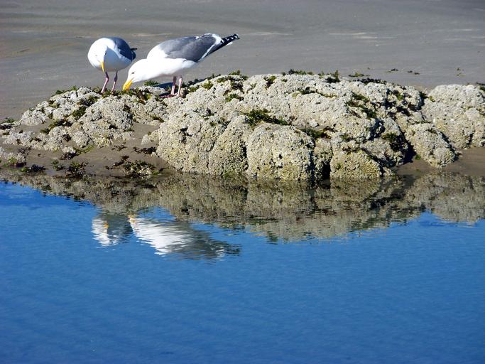 Keywords: birds gulls seagulls beach reflection rock summer