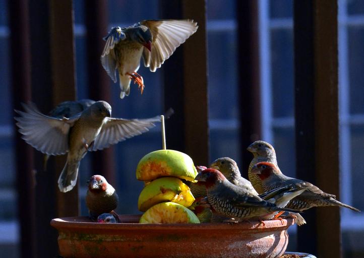 Keywords: birds sparrow apple garden food outdoors