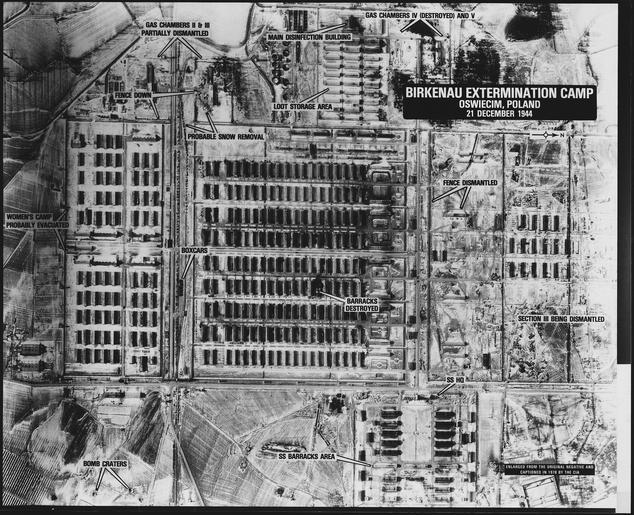 | Keywords: Birkenau Extermination Camp - Oswiecim, Poland - NARA - 305908.tif Scope and content General notes 305908 Local identifier 263-AUSCHWITZ-19 15 National Security Council Central Intelligence Agency Directorate of Intelligence National Photographic Interpretation Center 1961 - 1973 Cartographic and Architectural Records Section Special Media Archives Services Division NWCS-C National Archives at College Park 8601 Adelphi Road College Park MD 20740-6001 1944-12-21 Record group Record Group 263 Records of the Central Intelligence Agency 1894 - 2002 Record group ARC 590 Aerial Photography of Auschwitz Concentration Camp compiled 1973 - 1973 documenting the period 1944 - 1945 Series ARC 305893 File unit File unit ARC Variant control numbers NAIL Control Number NWDNC-263-AUSCHWITZ-19 15 yes Other versions <gallery> File Birkenau_Extermination_Camp_-_Oswiecim _Poland_-_NARA_-_305908 tif tif File Birkenau_Extermination_Camp_-_Oswiecim _Poland_-_NARA_-_305908 jpg jpg </gallery> NARA-cooperation PD-USGov NARA TIF images with categorized JPGs Auschwitz II aerial photographs |