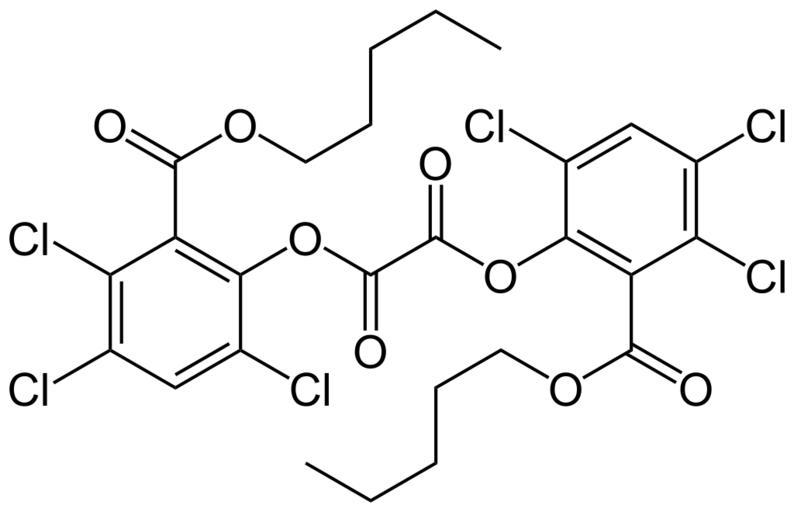 Keywords: Bis(2,4,5-trichlorophenyl-6-carbopentoxyphenyl)oxalate.svg Chemical structure of en Bis 2 4 5-trichlorophenyl-6-carbopentoxyphenyl oxalate made using BKchem Own 2007-01-13 User Bryan Derksen Oxalate esters