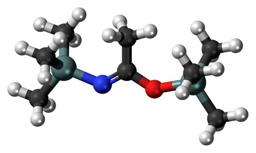 | Keywords: Bis(trimethylsilyl)acetamide-3D-balls.png Ball-and-stick model of the bis trimethylsilyl acetamide molecule a compound used in chemical analysis Colour code 505050 Carbon C black<br> F0F0F0 Hydrogen H white<br> F51E1E Oxygen O red<br> 3C50FA Nitrogen N blue<br> 78A0A0 Silicon Si blue-grey<br> 2011-06-08 own DS Visualizer Jynto talk Space-filling version cc-zero Trimethylsilyl compounds Silicon-nitrogen compounds Silicon-oxygen compounds Images by Jynto Ball-and-stick models | ||||