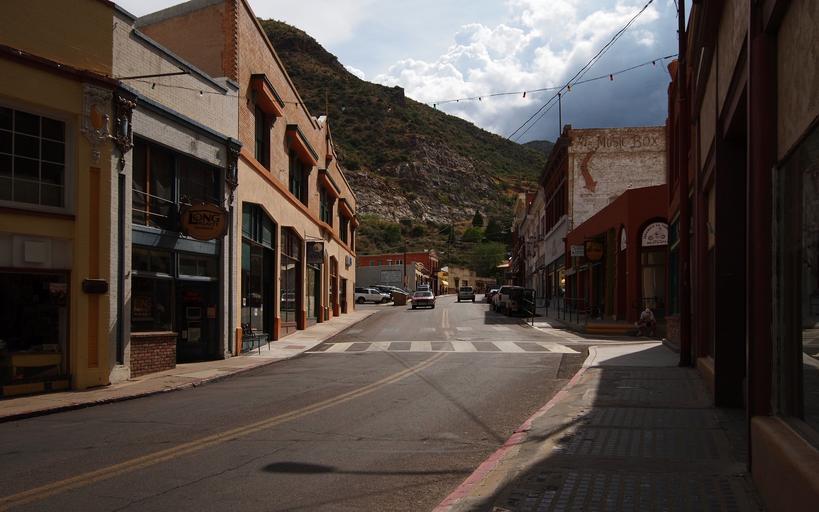Keywords: Bisbee Arizona-27527-1.jpg Looking west up Main Street in Bisbee near the intersection with Subway Street <br />Photo taken with an Olympus E-P1 in Cochise County AZ USA <br />Cropping and post-processing performed with The GIMP http //www kenthomas us KenThomas us <br /> personal website of photographer 2010-07-16 15 33-07 <sup>ISO 8601</sup> Ken Thomas This image is released to the public domain and therefore no permission or credit is required <br />Comments and/or feedback however are always welcome Please see my user page or http //kenthomas us my personal website for details and contact info 31 26 30 03 N 109 54 58 75 W heading SW Created with GIMP Widescreen desktop backgrounds Taken with Olympus E-P1 Main Street Bisbee Arizona |