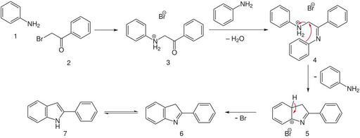 Keywords: Bischler-Möhlau-Reaktionsmechanismus-V1.svg en Bischler-Möhlau-Indolsynthesis de Bischler-Möhlau-Indolsynthese own Faynara 2010-06-17 Bischler-Moehlau indol synthesis