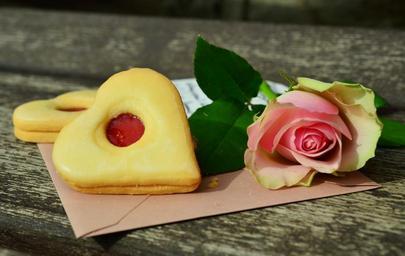 Keywords: biscuit heart rose love greeting card friendship pink pastries affection greeting