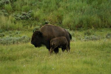 Keywords: bison calf yellowstone buffalo wildlife animal