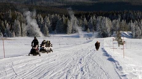 MAKE A MEME View Large Image yellowstone yellowstone national park yellowstonenationalpark wildlife sport snow outdoor Bison and snowmobilers on road at Fountain Flats; Diane Renkin; January 2015; Catalog #20405d; Original #IMG_7446 Bison and snowmobilers on road at ...