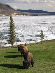Keywords: bison herd usa grazing buffalo canadian mammal mountains canada field grass summer outside portrait horns wild eating animal american wildlife
