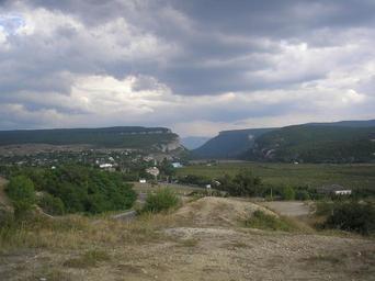 Keywords: Biyuk-Syren1.JPG en Village Tankovoe Bakhchisaray Raion ru Село Танковое Бахчиса айский айон а заднем плане Бельбекские во ота own Kosun 2009-08-10 Cc-zero Tankovoe Belbek gate