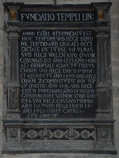 Keywords: Björn III.jpg Plaque in Linköping Cathedral Sweden with apocryphal history of the building; the text is probably due to Messenius Own Christmas 2007 Pieter Kuiper Public Domain Interior of Linköpings domkyrka Beorn Björn 2007 in Linköping December 2007 in Sweden