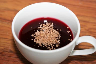 Keywords: Blåbärssoppa.jpg En kopp med blåbärssoppa och rostad kokos A cup with blueberry soup Own Dnor Fruit soup Blueberries as food