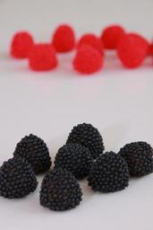 Keywords: black blackberries candy chewy flavored fruit jelly raspberries red food drink