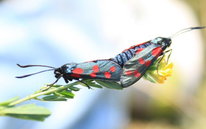Keywords: black butterflies butterfly copulation dots mating nine-spotted red spot insects