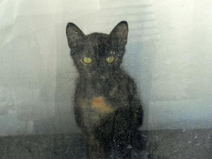 Keywords: cat black cat blackcat window behind the window behindthewindow scratched window scratchedwindow animal outdoor