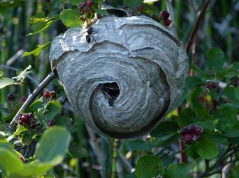 Keywords: black wasp hanging nest building insects meadow forest nature close-up