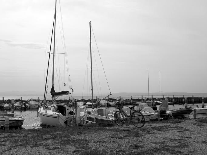 Keywords: black and white boat porto sea bicycle