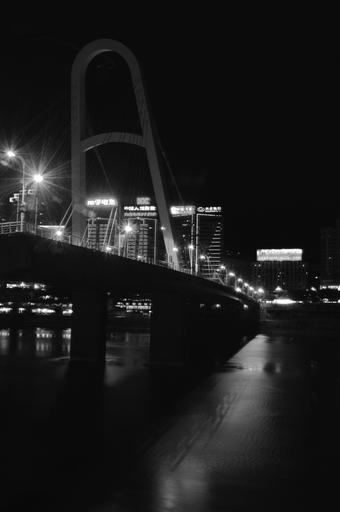 Keywords: black and white bridge night view light