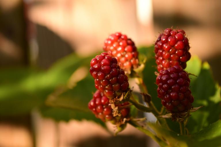 Keywords: blackberries unripe blackberries immature fruits berries red bush fruit plant nature bramble