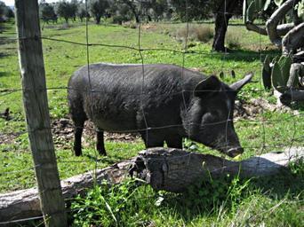 Keywords: BlackPig005.JPG en Young black pig being raised naturally in a farm near Montemor-O-Novo Portugal own Xyzt1234 2009-02-17 Sus scrofa domesticus
