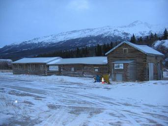 Keywords: Blackrapidsroadhouse1.JPG A photo of the w en Black rapids roadhouse Own 2007-11-05 Icewedge Public domain Roadhouses in Alaska Log buildings in Alaska