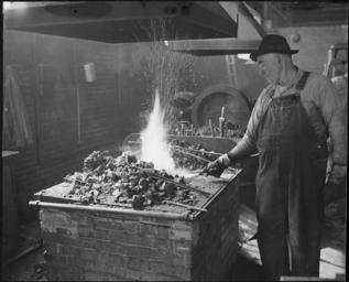 | Keywords: Blacksmith and his forge. The Pocahontas Corporation, Mines 33-34, Bishop, Tazewell County, Virginia. - NARA - 541077.tif Scope and content General notes 541077 Local identifier 245-MS-2050L Department of the Interior Solid Fuels Administration For War 04/19/1943 - 06/30/1947 NARA-Author Lee Russell 1903-1986 Photographer 2489414 <br /> Still Picture Records Section Special Media Archives Services Division NWCS-S National Archives at College Park 8601 Adelphi Road College Park MD 20740-6001 1946-08-27 Record group Record Group 245 Records of the Solid Fuels Administration for War 1937 - 1948 Record group ARC 572 Photographs of the Medical Survey of the Bituminous Coal Industry compiled 1946 - 1947 Series ARC 540230 File unit File unit ARC Variant control numbers NAIL Control Number NWDNS-245-MS-2050L yes Other versions <gallery> File Blacksmith_and_his_forge _The_Pocahontas_Corporation _Mines_33-34 _Bishop _Tazewell_County _Virginia _-_NARA_-_541077 tif tif File Blacksmith_and_his_forge _The_Pocahontas_Corporation _Mines_33-34 _Bishop _Tazewell_County _Virginia _-_NARA_-_541077 jpg jpg </gallery> NARA-cooperation PD-USGov NARA TIF images with categorized JPGs Virginia Coal mining in Appalachia August 1946 in the United States Bib overalls Black and white photographs Black and white photographs of men at work Black and white photographs of standing men Virginia Black and white photographs of the United States in the 1940s Black and white photographs of Virginia Blacksmiths from the United States Virginia Males with gloves Men at work in Virginia Men facing left and looking left Men with hats 1946 in Virginia People of Virginia People of the United States in 1946 Tazewell County Virginia 20th-century men of the United States 27 August |