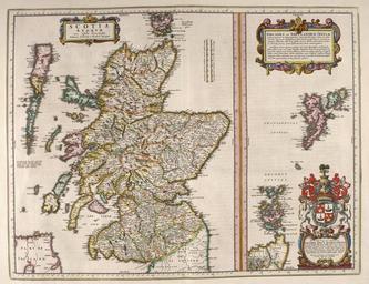 | Keywords: Blaeu - Atlas of Scotland 1654 - SCOTIA REGNUM - Kingdom of Scotland.jpg SCOTIA REGNUM - Kingdom of Scotland NLS Collections http //www nls uk/maps/early/blaeu/blaeu_maps_index html 1654 Blaeu Public domain 70 years post mortem auctoris PD-old-100 Blaeu Atlas of Scotland 1654 Coats of arms on maps Boats in heraldry 6 six rays in heraldry Maps of the Outer Hebrides Maps in the National Library of Scotland | ||||