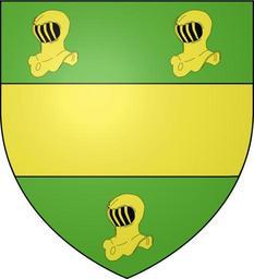 Keywords: Blason de la famille chrestien.svg De sinople à la fasce d'or accompagné de trois casques du même own Nicolas C SVG coats of arms of families of France Vert a fess Or Or and vert in heraldry Helmets in heraldry