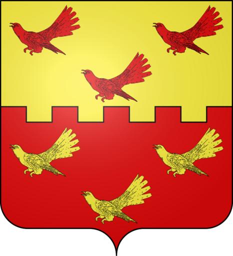 | Keywords: Blason de la ville de Vaudoncourt (Meuse).svg blazon of en city of Vaudoncourt Vaudoncourt Meuse Vaudoncourt fr Coupé crénelé d ™or et de gueules à six coucous de l ™un en l ™autre disposés 2 1 2 1 spax89 Projet Blasons Own spax89 v -Blasons other versions Vaudoncourt Meuse Coats of arms of cities in Meuse SVG coats of arms of France Counterchanging and countercolouring Or and gules Birds in heraldry DEFAULTSORT Vaudoncourt Blason spax89 | ||||