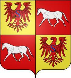 Keywords: Blason de la ville de Flastroff (Moselle).svg blazon of en city of Flastroff Flastroff Moselle Flastroff fr Écartelé au premier et au quatrième d'or à l'aigle de gueules chargée d'une lettre S capitale cousue d'azur au deuxième et au troisième de gueules au cheval d'argent spax89 Projet Blasons Own spax89 v -Blasons other versions Flastroff Contravention of no colour on colour Coats of arms of cities in Moselle SVG coats of arms of France DEFAULTSORT Flastroff |